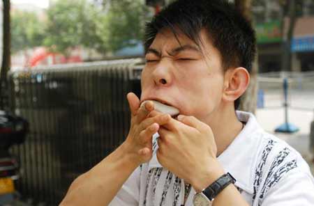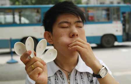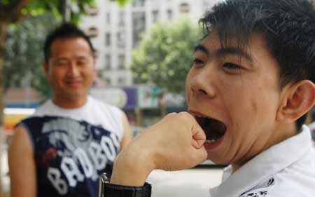 2006年6月25日,辽宁省抚顺市奇人张东在南京市街头表演了吞拳、吞6把汤勺的绝活,让观看的市民目瞪口呆。据其经纪人胡旨介绍,张东是来参加江苏卫视举行的“激情60秒”比赛的,今年25岁,他从懂事开始就能把拳头放到嘴里,可是谁都不知道。直到6岁,他和父亲打赌如果他“口吞拳”父亲就给他买零食,他的父母才发现他们的宝贝儿子有这个天赋。